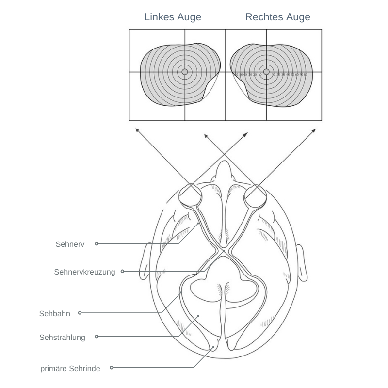 Durch das Zusammenspiel der optischen Elemente der Augen – Hornhaut, Linse und Augenflüssigkeit – wird ein scharfes Bild auf der Netzhaut abgebildet und in Energie umgewandelt. Danach gelangt es über dünne Nervenfasern bis zum Sehnerv im Gehirn, wo sich die Nervenbahnen verzweigen.