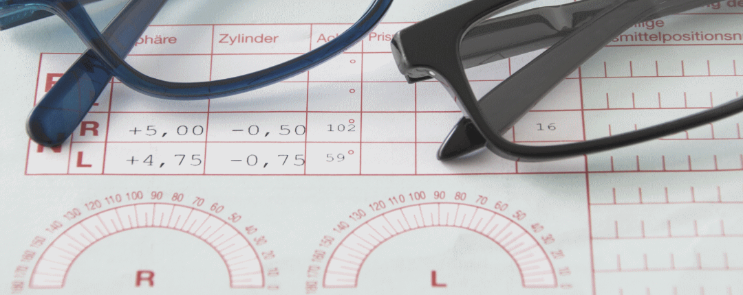 Das ausgestellte Brillenrezept enthält sehr präzise, fachliche Informationen, die Auswirkung der diagnostizierten Sehschwäche mithilfe einer Brille oder Kontaktlinse zu korrigieren.